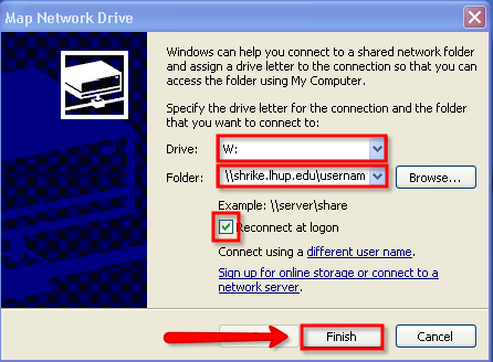 - You computer will be trying to connect your LHUP web drive.